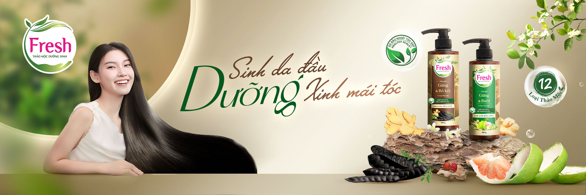 Dầu gội Fresh Thảo mộc dưỡng sinh - Chắc khỏe Bồng bềnh, 480g (new)